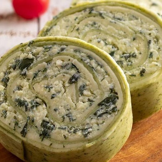Rondelli 4 queijos com espinafre na massa de Espinafre peso: aproximadamente 1Kg serve 2 pessoa embalagem para aquecimento no forno ou micro-ondas