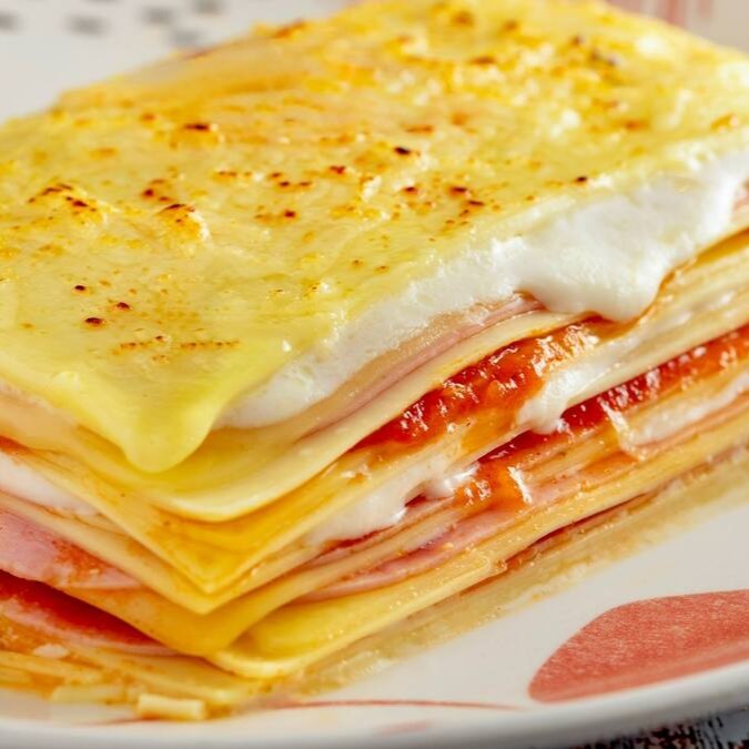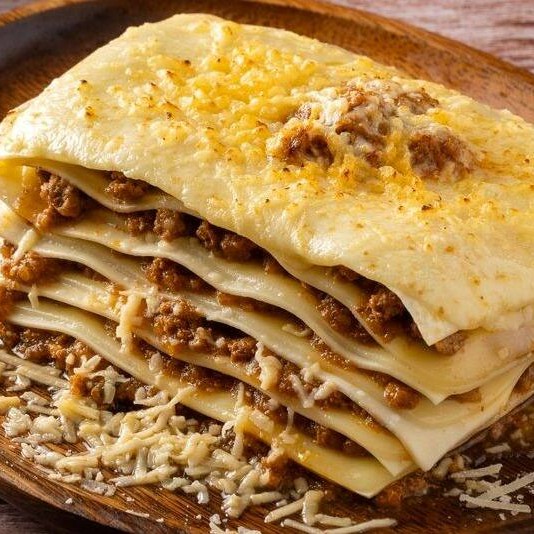 Lasanha (molhos + massa + Queijo) peso: aproximadamente 500 g serve 1 pessoa embalagem para aquecimento no forno ou micro-ondas