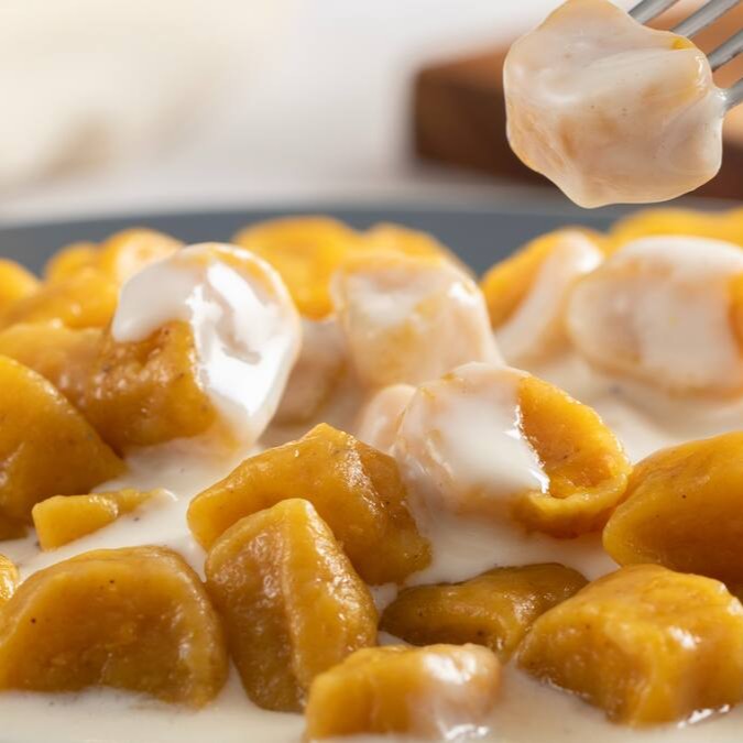 Nhoque de batata peso: aproximadamente 500g serve 1 pessoa embalagem para aquecimento no forno ou micro-ondas