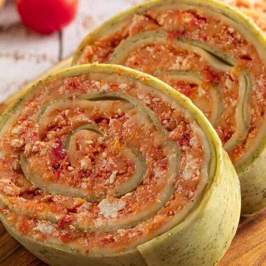 Rondelli Ricota com tomate Seco na massa de Espinafre peso: aproximadamente 500g serve 1 pessoa embalagem para aquecimento no forno ou micro-ondas