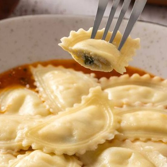 Rondelli 4 Queijos com Espinafre na massa de Espinafre peso: aproximadamente 500g serve 1 pessoa embalagem para aquecimento no forno ou micro-ondas
