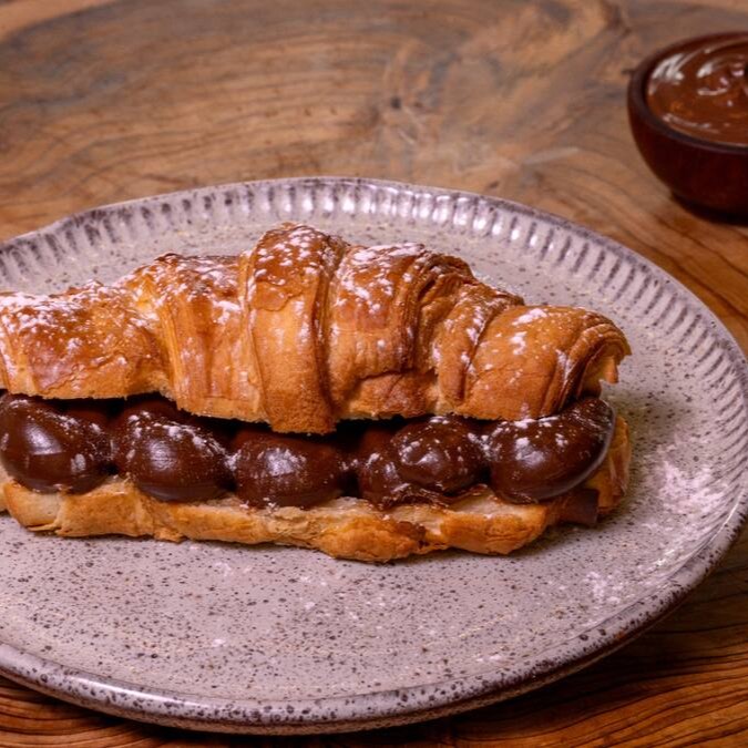 Delicie-se com o nosso Croissant Recheado com Nutella. Este croissant, à moda francesa, é meticulosamente preparado e leva um recheio generoso de Nutella. Sua textura crocante por fora e suave por dentro, aliada ao sabor único e irresistível da Nutella, proporciona uma experiência culinária verdadeiramente indulgente. Uma opção perfeita para um café da manhã luxuoso ou um lanche da tarde aconchegante. Experimente e se apaixone por este prazer francês recheado de sabor italiano.