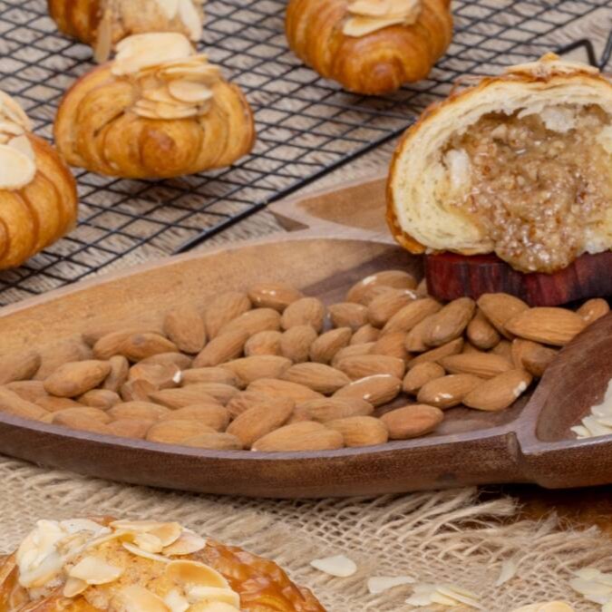 Saboroso e apetitoso Croissant com Amêndoas, meticulosamente preparado. Este croissant, com um peso perfeito de 120 gramas, é generosamente recheado com amêndoas crocantes e selecionadas, proporcionando uma explosão de sabores a cada mordida. A combinação perfeita de crocância e suavidade torna este prato irresistível. Uma delícia que fará você se apaixonar à primeira mordida!