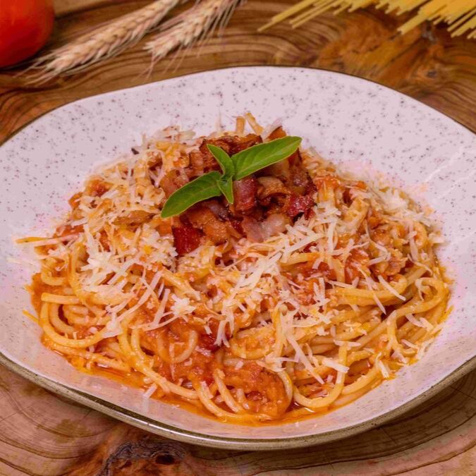 O Espagueti à Matriciana é um sublime prato à la carte, finamente composto por um espagueti al dente, mergulhado em um autêntico e robusto molho de tomate italiano, realçado pelo sabor marcante e irresistível do bacon crocante. Esta é uma deliciosa refeição que promete uma experiência culinária inesquecível e satisfatória.