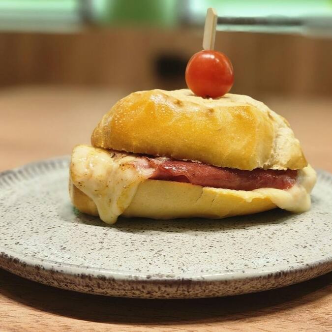 Desfrute do nosso exclusivo sanduíche 'Ciabatta com Geleia de Damasco e Brie'. Uma combinação perfeita de sabores sofisticados em uma ciabatta crocante e fresca, recheada com a suave e cremosa textura do queijo Brie de alta qualidade. A geleia de damasco adiciona um toque de doçura e acidez, equilibrando perfeitamente com o sabor rico do Brie. Completamos esta delícia com nozes crocantes para um contraste de texturas e a rúcula fresca para um final leve e picante. Uma verdadeira explosão de sabores em cada mordida!