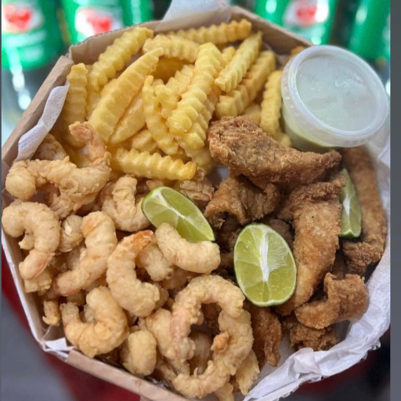 Batata frita file de tilapia camarão 7 barbas