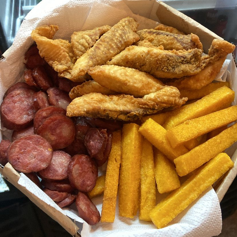 Acompanha camarão 7 barbas file de tilapia polenta da casa frita batata frita aprox 850g