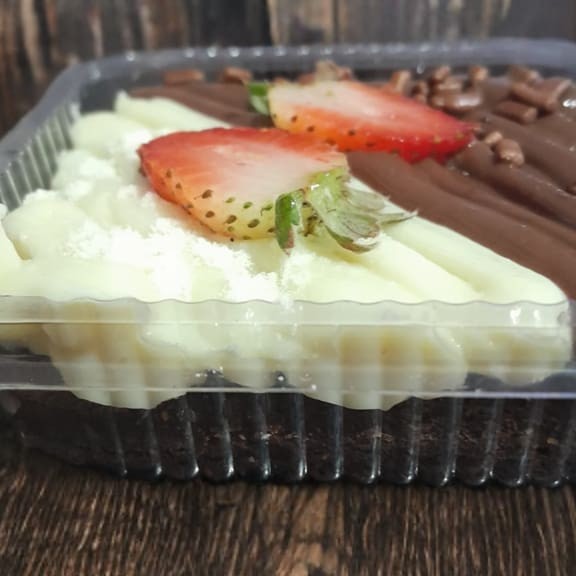 Um doce irresistível que esconde uma camada generosa de brownie super macio sob uma cobertura cremosa e delicada. Cada garfada revela a combinação perfeita entre textura e sabor, para quem ama um toque especial de chocolate com surpresa a cada mordida!