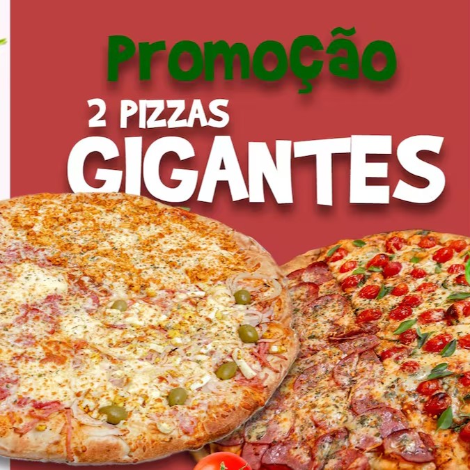 2 pizzas Giga/ ate 2 sabores cada/ sabores tradicionais e doces