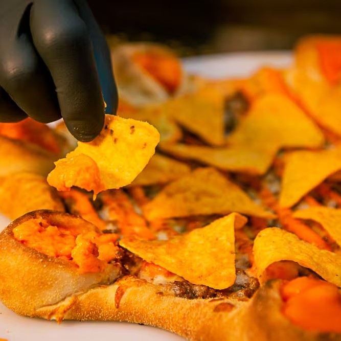 Pizza Grande ( 8 fatias) sabor Nachos com borda Vulcão sabor Cheddar