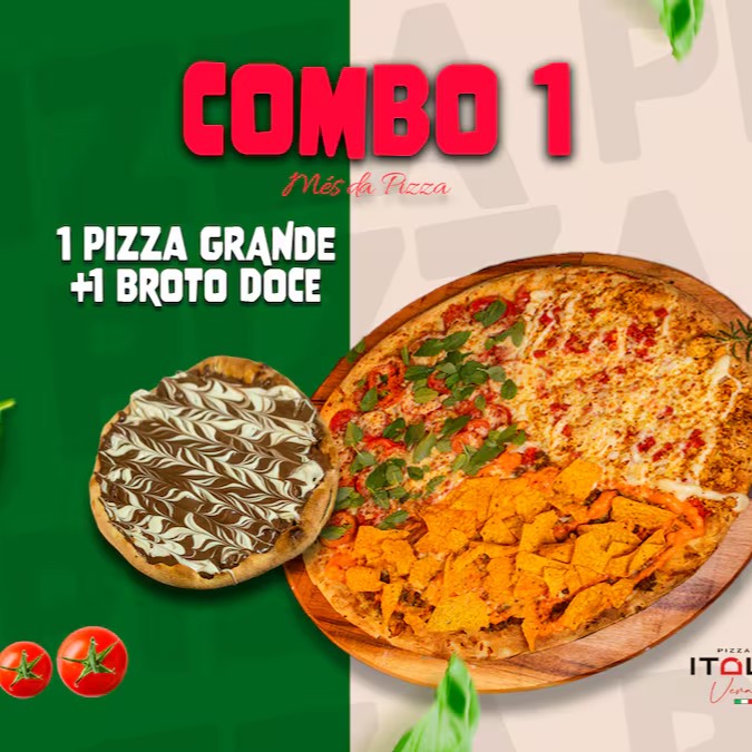 1 Pizza Trem (até 03 sabores tradicionais) + 1 Pizza Broto ( 01 sabor doce)
