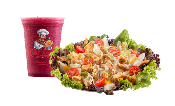 Sua salada favorita com o molho que você ama + suco natural de 300ml