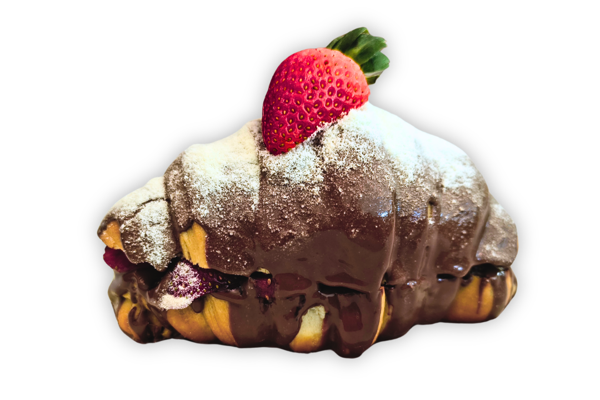 Encante-se com o nosso Pain de Chocolate da categoria Croissants Doces. Apresentamos um croissant petit delicadamente recheado com uma generosa porção de pain de chocolate. A finalização é feita com uma cobertura de chocolate ao leite, de textura sedosa e sabor inconfundível, que acrescenta uma nota de doçura irresistível a cada mordida. Uma combinação perfeita para o seu paladar!