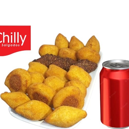 25 Mini Salgadinhos 1 sabor a escolher + um refrigerante lata 350 ml