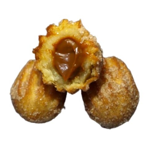 Delicioso mini churros de doce de leite com açúcar e canela.