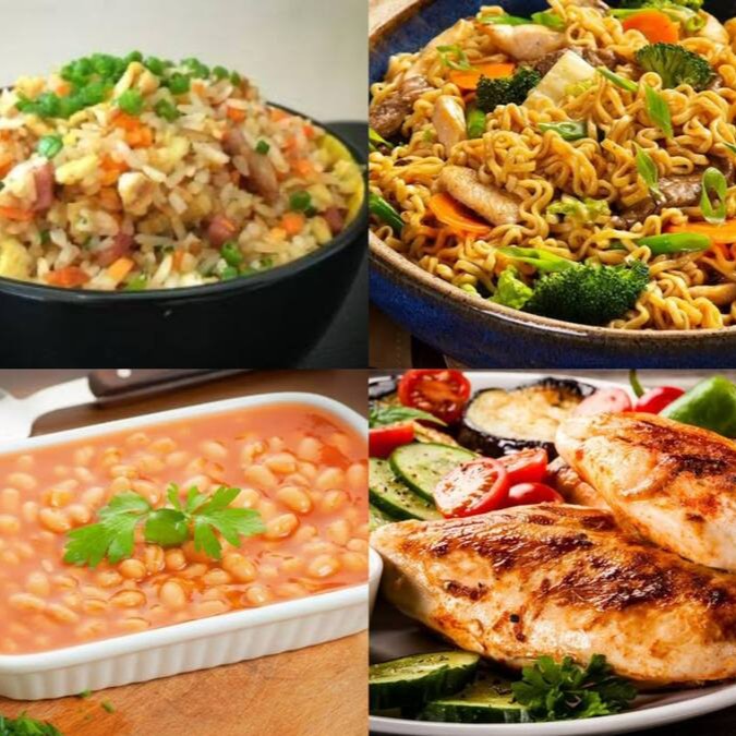 Marmita Arroz Branco+ Yakisoba+ Feijão Branco+ Frango Grelhado