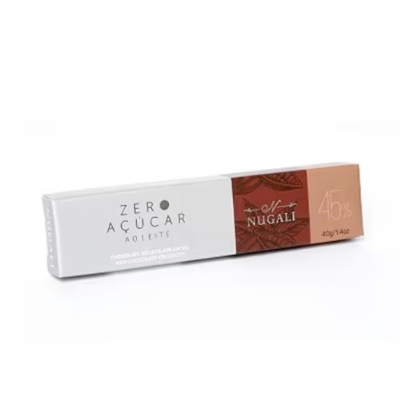 Chocolate Nugali Ao Leite Zero Açúcar Embalagem 40g