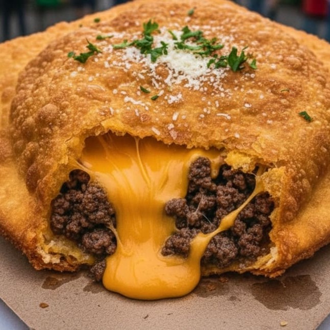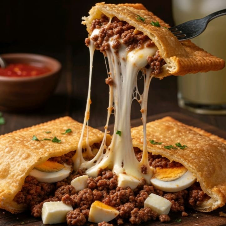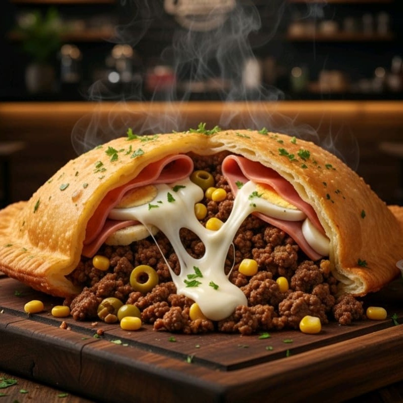 Não é um pastel, é uma refeição! Recheado com carne, mussarela, presunto, ovo, milho, azeitona e um toque generoso de Catupiry. Para quem tem fome de verdade!