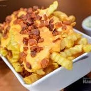 Porção de batata corte especial queijo cheddar bacon e sal temperado.