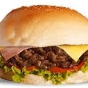 Pão hamburguer, maionese caseira, alcatra, hamburguer,, presunto, cebola, pepino agridoçe, molho barbecue.
