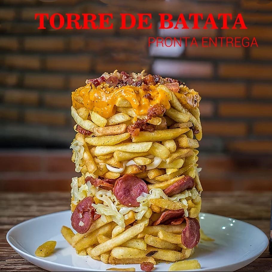 1,5 kg de batata com bacon calabresa alcatra e molho 4 queijos.