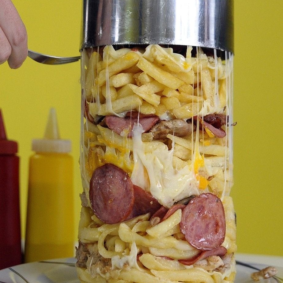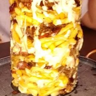 1,0 kg de batata com bacon calabresa e molho 4 queijos