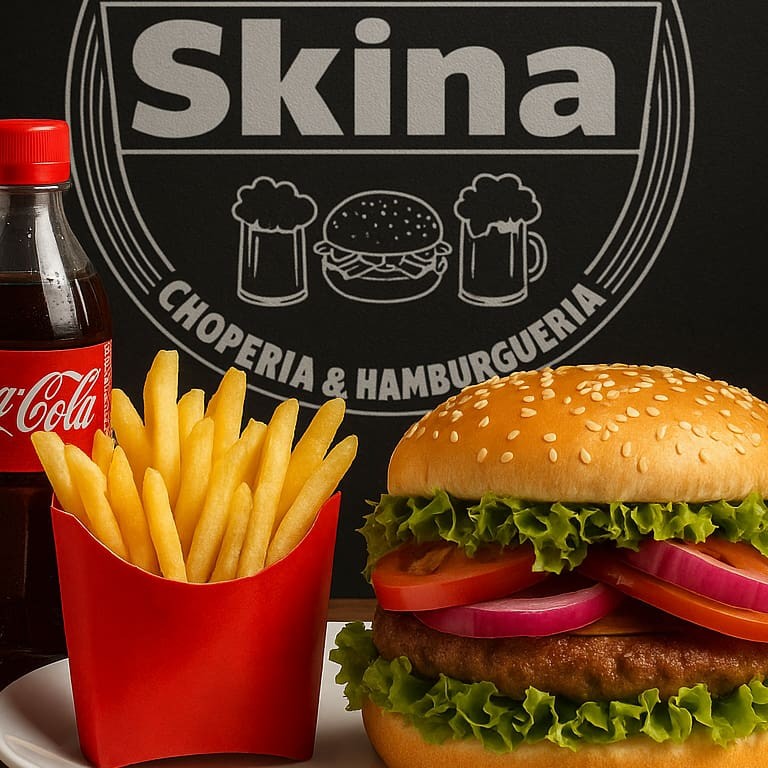 2 Skina Burguer Com Hamburguer Artesanal De 120 Gramas Mais Fritas Com Cheddar E Bacon