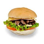 Pão, maionese, queijo, presunto, hambúrguer, alface, tomate, alcatra na chapa, milho.