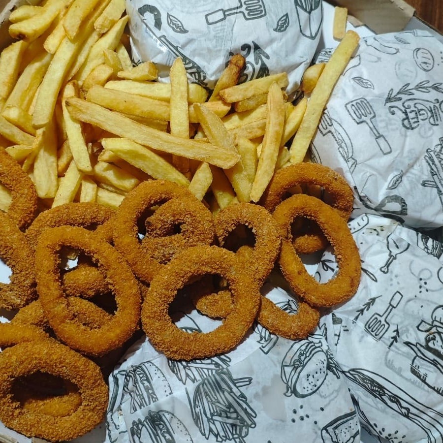 4 X Salada Porção De Batata Fritas Com Aneis De Cebola