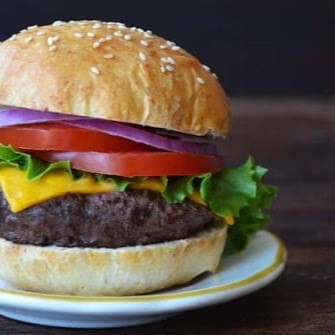 Pão, hambúrguer de carne 150 gramas, queijo mussarela e maionese caseira