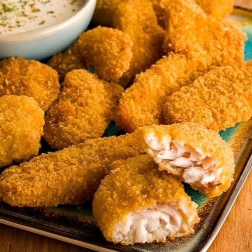 Iscas de tilapia empanadas peso 700 gramas antes de fritar.