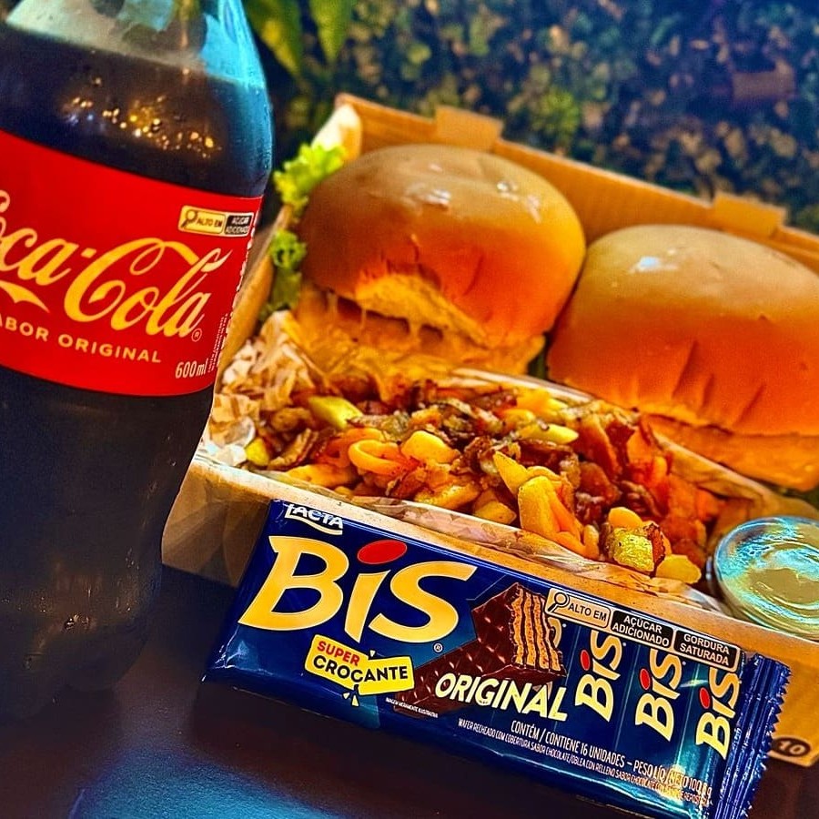 2 X Salada Com Hamburguer Tradicional Mais Porção De Batata Frita Com Cheddar E Bacon Mais Coca Cola 600 Ml Mais Uma Caixa De Bis Preto Ou Branco