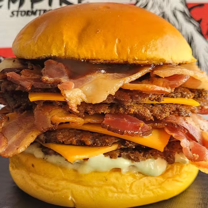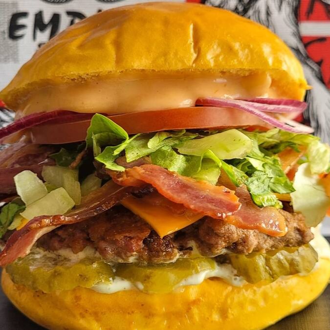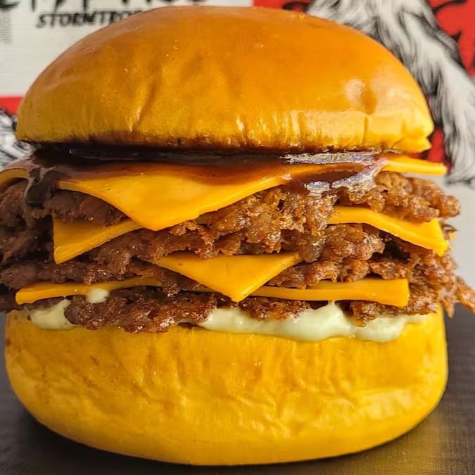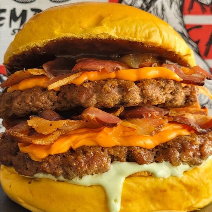 Deixe-se levar pelo sabor com nosso pão brioche macio, recheado com 4 hambúrgueres artesanais de 40g cada, 4 fatias de queijo cheddar derretido e o dobro de bacon crocante em fatias. Finalizado com maionese cremosa e um toque de molho barbecue, este lanche é uma explosão de sabores que vai satisfazer até os maiores apetites!