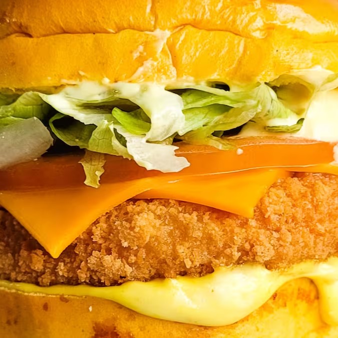 Uma combinação de crocância e sabor em cada mordida! Pão brioche macio, hambúrguer de frango empanado douradinho, duas fatias de cheddar derretido, três onion rings crocantes, cebola roxa, pickles agridoce e o equilíbrio perfeito de ketchup e mostarda