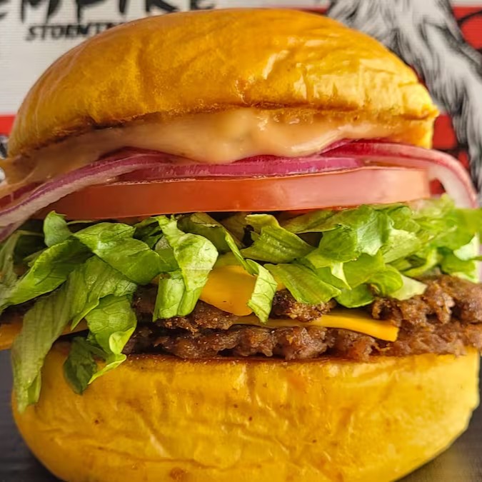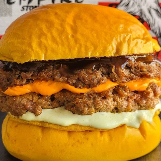Delicie-se com pão brioche macio, recheado com 2 hambúrgueres artesanais de 40g cada, 2 fatias de queijo cheddar derretido, maionese cremosa e um toque de molho barbecue. Uma explosão de sabor em cada mordida!