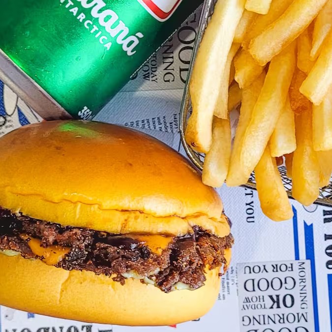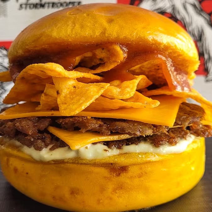 Experimente uma explosão de sabor com o nosso irresistível pão brioche, macio e dourado, recheado com dois hambúrgueres artesanais suculentos de 40g cada. Entre os hambúrgueres, derretem-se duas fatias generosas de queijo cheddar, criando uma combinação cremosa e saborosa. Finalizamos com uma camada de maionese cremosa, um toque de ketchup e o crunch irresistível do Doritos, garantindo uma mordida cheia de texturas e sabores inesquecíveis. Uma verdadeira festa para o seu paladar!