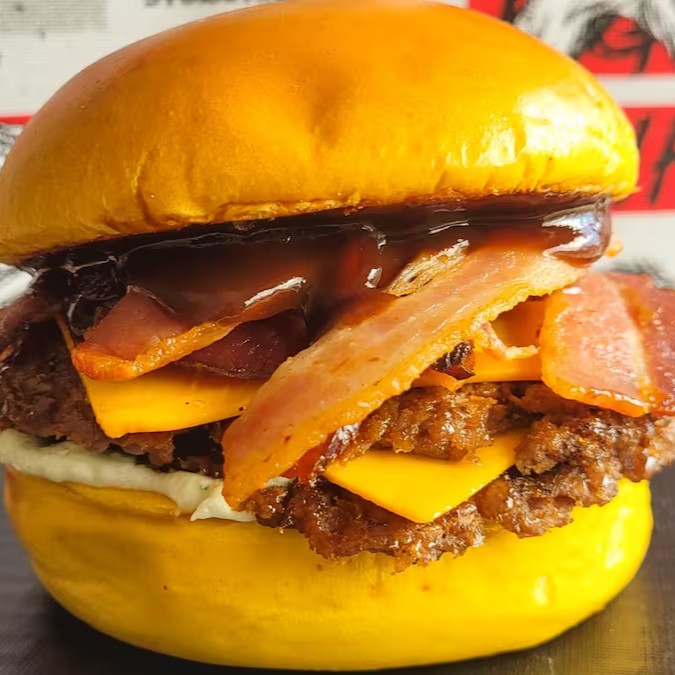 Deixe-se envolver por um pão brioche macio, recheado com 2 hambúrgueres artesanais de 40g cada, 2 fatias de queijo cheddar derretido, bacon crocante em fatias, maionese cremosa e um toque irresistível de molho barbecue. Uma combinação perfeita que vai conquistar seu paladar a cada mordida!