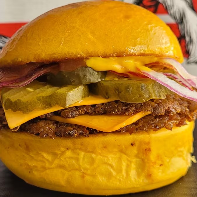 Sinta a harmonia do pão brioche leve envolvendo dois suculentos hambúrgueres, queijo cheddar derretido, ketchup, mostarda de qualidade e um toque de pickles agridoce com cebola roxa.