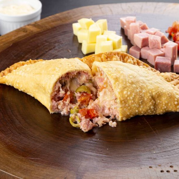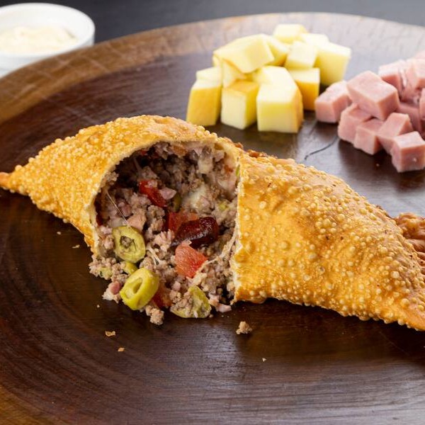 Milho, Catupiry, mussarela, azeitona, palmito, carne moída, calabresa.