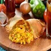 Moqueca de camarão, catupiry, mussarela, tomate, cebola, pimentão.
