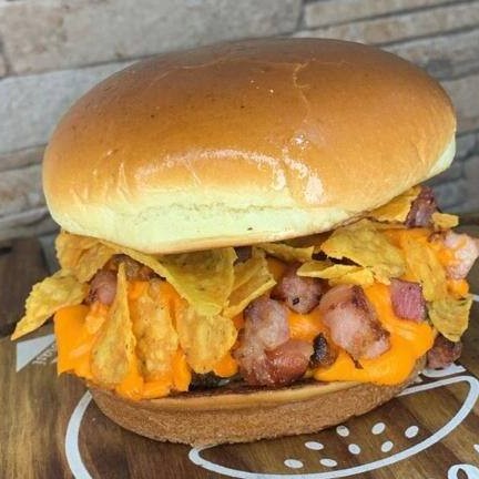 O 'Cletus Doritos' é um burger artesanal que redefine a experiência do paladar. Começa com um pão brioche fresquinho e crocante, generosamente untado com maionese caseira. No coração do prato, encontra-se um suculento hambúrguer de costela com 150g, coberto com queijo cheddar derretido e um toque de cheddar cremoso. O bacon em cubos adiciona uma crocância irresistível. Mas o verdadeiro diferencial é o Doritos, que traz um sabor surpreendente e único. Tudo é delicadamente regado com um molho barbecue doce e picante, que dá o toque final perfeito a este prato.
