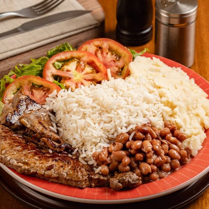 Deliciosa opção individual de carne, perfeitamente preparada para satisfazer seu paladar. Apresenta um bife suculento, cuidadosamente grelhado para realçar seu sabor intenso. Acompanha um arroz soltinho e al dente, junto a um feijão caseiro, cozido lentamente para obter uma textura incrível e um sabor inconfundível. Acompanha ainda um purê de batata aveludado e cremoso, feito com batatas selecionadas e uma pitada de amor. Finaliza com uma salada fresca e crocante, trazendo a leveza necessária para equilibrar o prato. Perfeito para um almoço executivo ou para desfrutar em casa, na comodidade de uma marmita. Uma refeição completa, saudável e repleta de sabor!