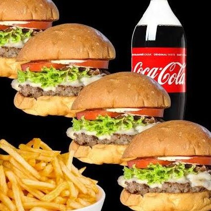 4 x salada,500 gramas de batata e uma coca cola 2 litros