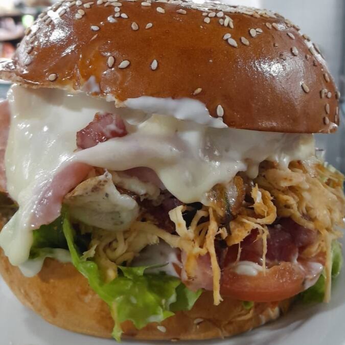 O 'Lanche X-Tudo' é uma verdadeira explosão de sabores da categoria 'Lanches Imperdíveis'. Este delicioso sanduíche é composto por um pão de hambúrguer fresquinho, um suculento hambúrguer, cremosa maionese, queijo derretido, fatias de presunto, crocante alface, tomate fresco, um ovo perfeitamente frito, frango desfiado, calabresa saborosa e, para finalizar, bacon frito na hora, que adiciona a crocância perfeita. Uma combinação irresistível e imperdível para todos os amantes de um bom lanche!