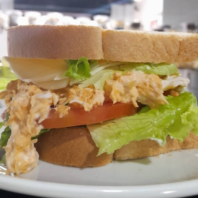 Pão integral fatiado,maionese,alface,tomate, pepino em conserva,e frango desfiado . *vai dois lanches*