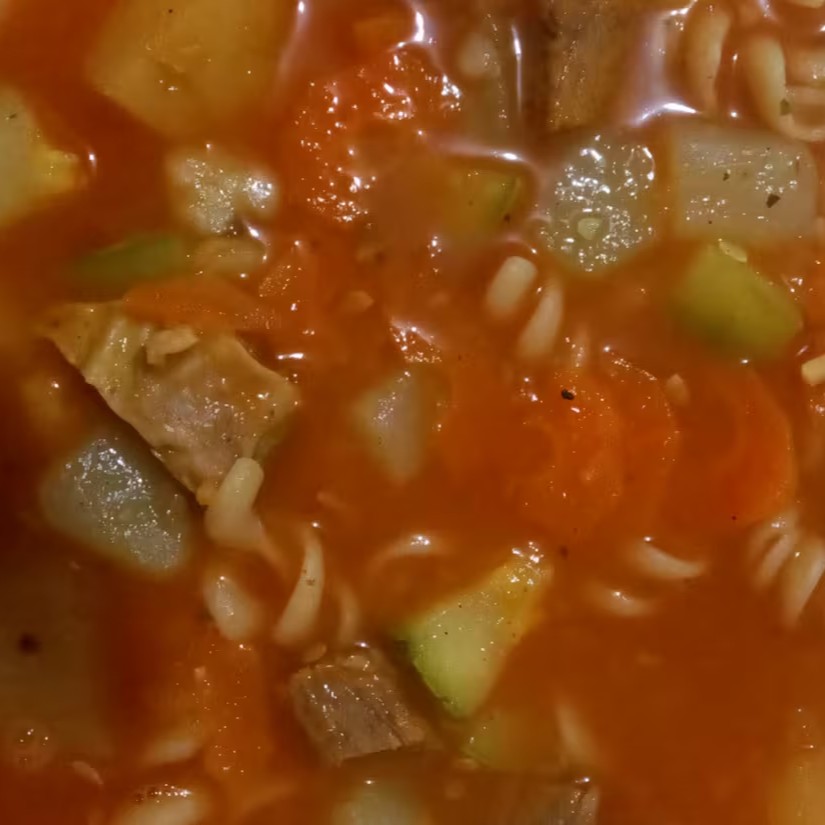 Sopa De Macarrão Com Carne Vermelha E Legumes