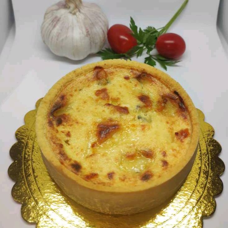 Nossa Quiche Artesanal É Composta De Uma Massa Levemente Amanteigada, Crocante E Deliciosa. Recheada Com Creme De Queijos, Bacon, Alho - Poró Gorgonzola e Catupiry. Finalizado Com Queijo Mussarela E Gratinado.