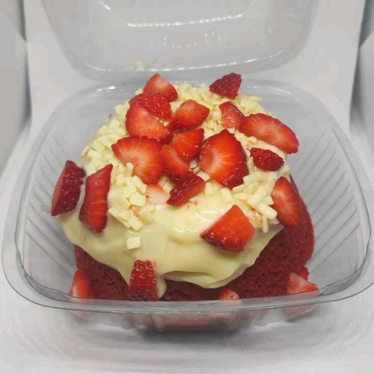 Nosso Diferencial É Que a Massa Desmancha Na Boca Com Uma Textura Sem Igual E Uma Leve Acidez De Iogurte Natural. Recheado No Centro Com Geleia De Morango Artesanal . Coberto Com Uma Calda Cremosa De Brigadeiro Branco Quentinha E Finalizado Com Morangos in - Natura .