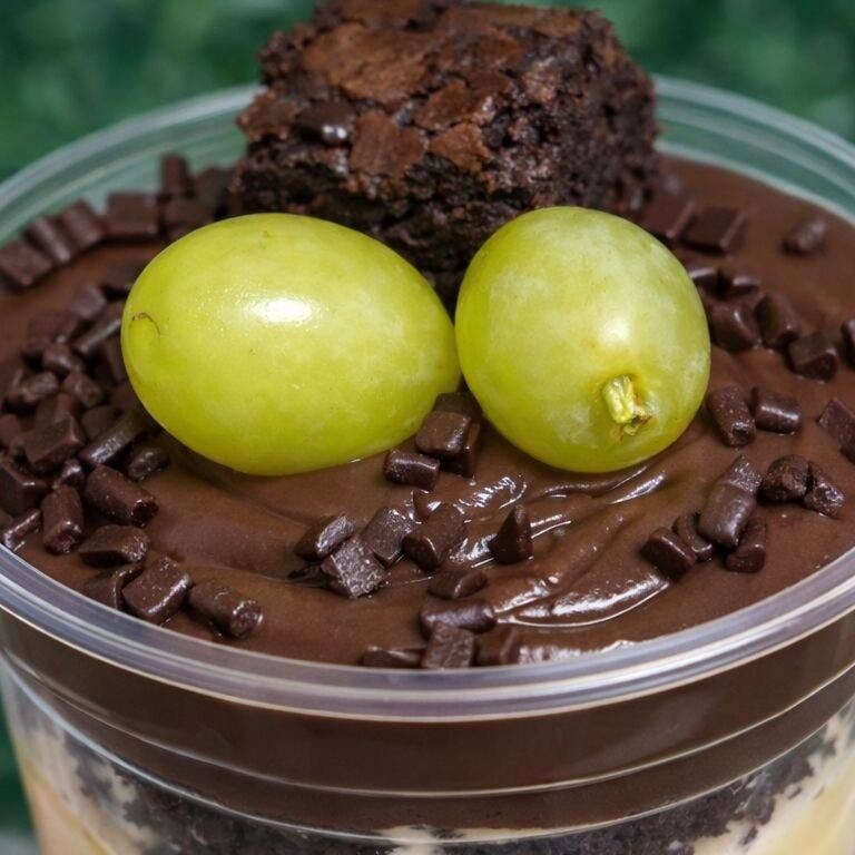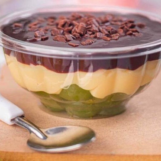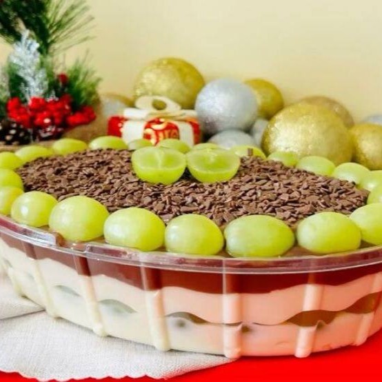 Camadas de creme de Ninho, Brownie molhadinho, recheado com Uvas verdes sem sementes e chocolate 50%. 330 ml