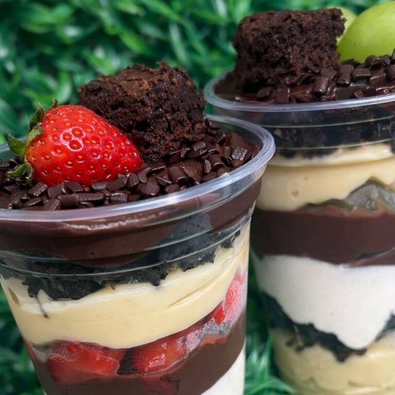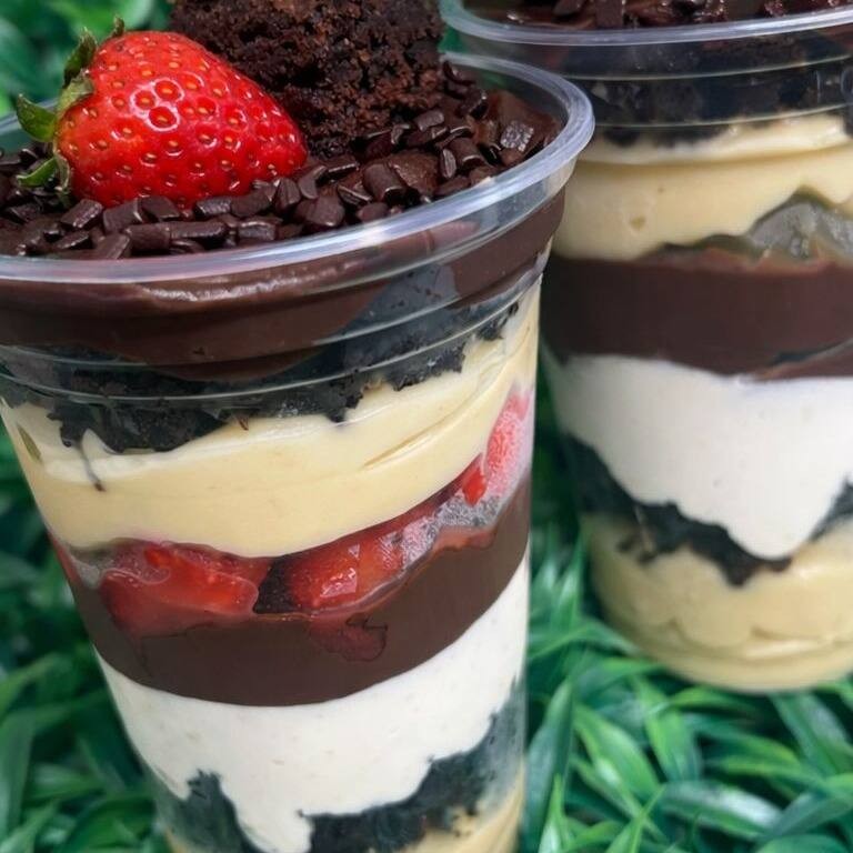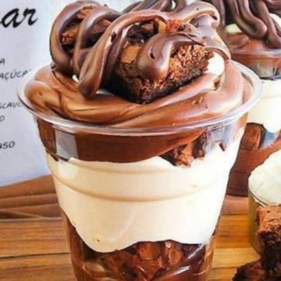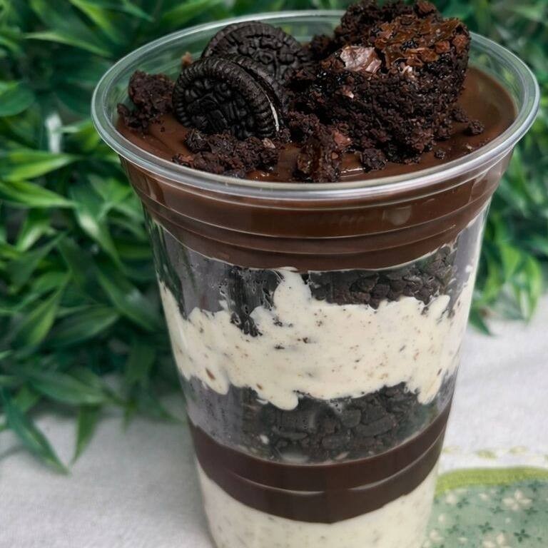 Um delicioso copo com recheio de brigadeiro 50%, pedaços de brownie e um maravilhoso mousse de Ninho. 330 ml